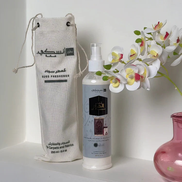 Nusuki’s Al-Haram Freshener offers a spiritual aroma that reflects the holiness of Al-Haram. Crafted with premium ingredients and long-lasting stability, it leaves carpets, fabrics, and gatherings infused with a sacred ambiance for hours.