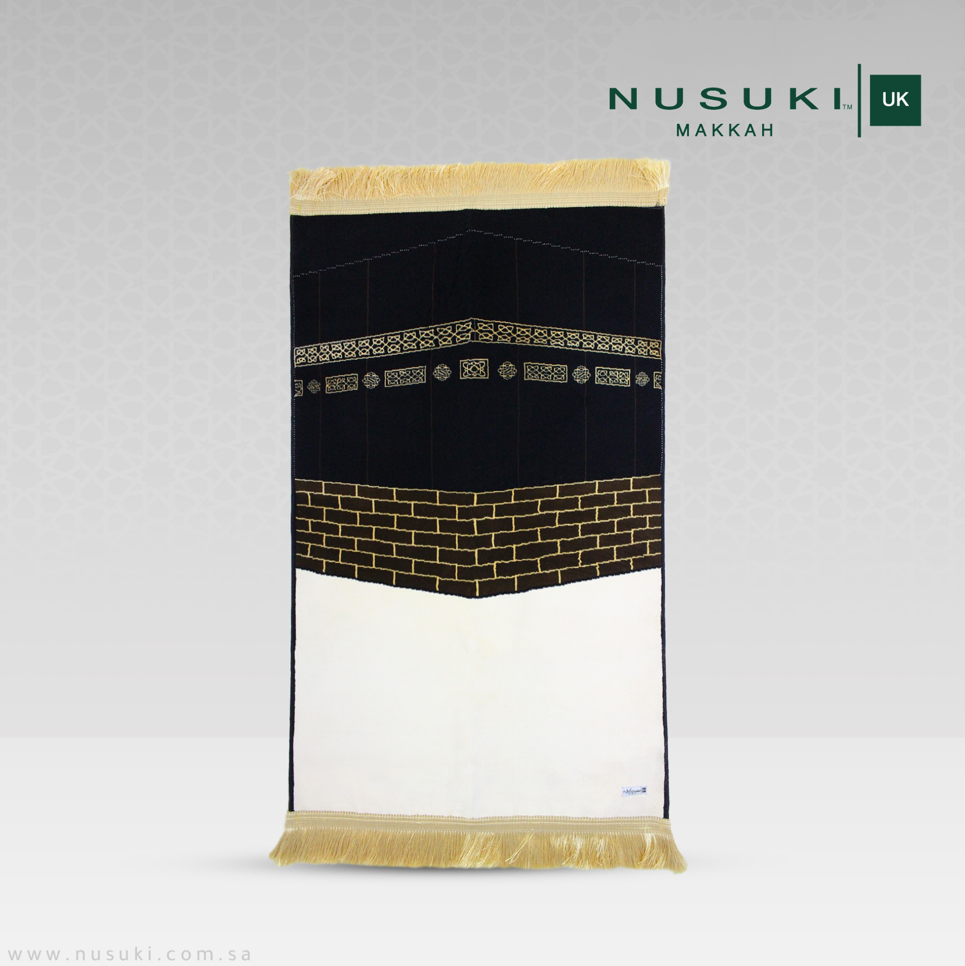 Experience sacred serenity with Astar Al-Kaaba Prayer Mats by Nusuki. Featuring a design inspired by the cover of the Kaaba, these mats are crafted from premium-quality fabric for elegance and comfort in every prayer.