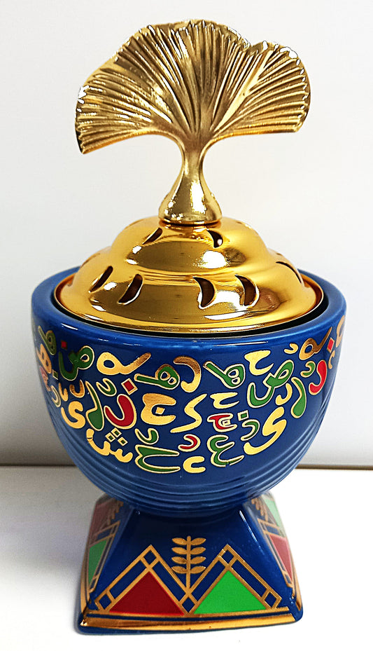 Luxury Arabic Calligraphy Incense & Oud Burner – Blue & Gold
