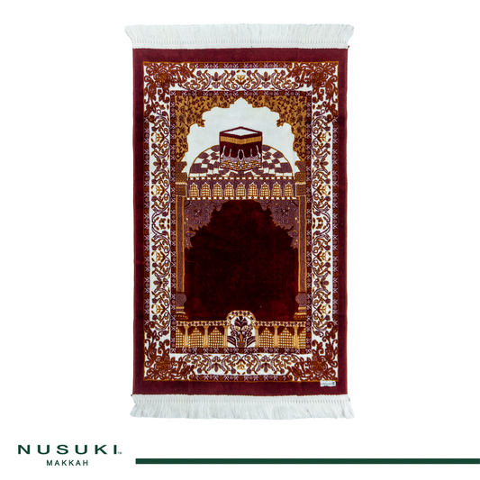 Al Rawdha Al Sharifa Prayer Mat - Red with Handbag