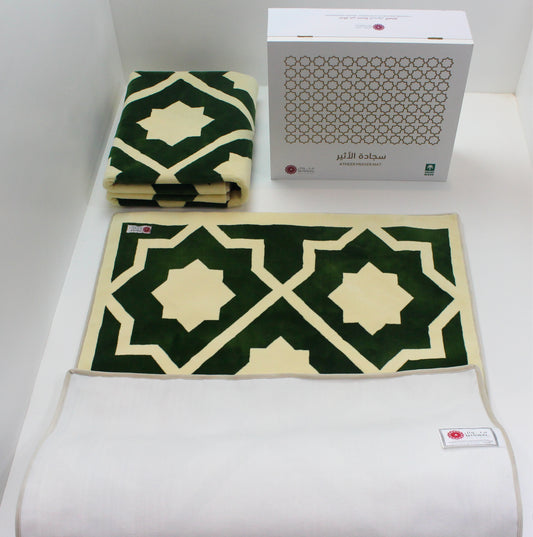 Rawdat Al-Haramain Prayer Mat Green with Handbag