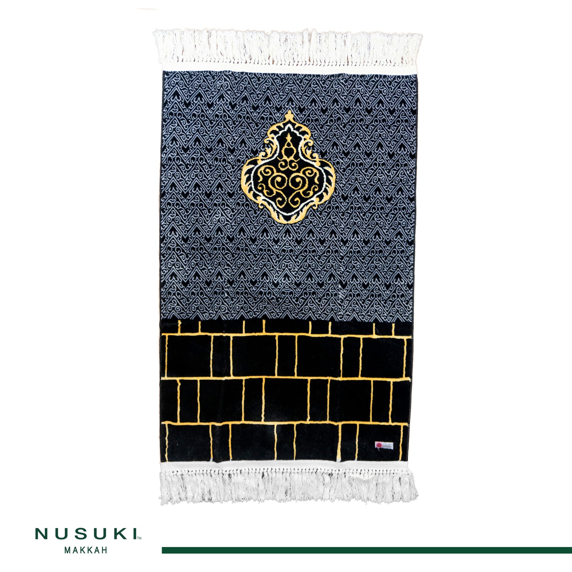 Feel the sacred serenity with the Al-Kaaba Wall Prayer Mat by Nusuki, featuring elegant patterns inspired by the walls of the Kaaba.