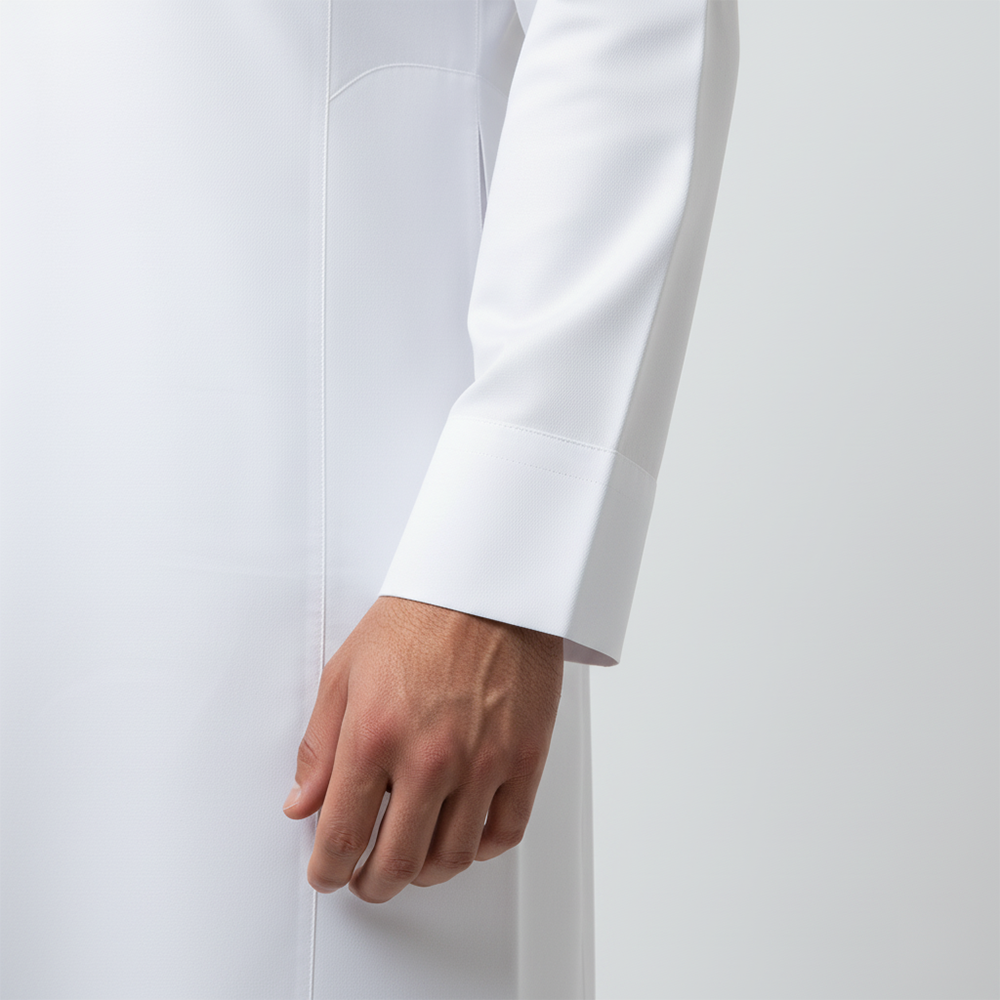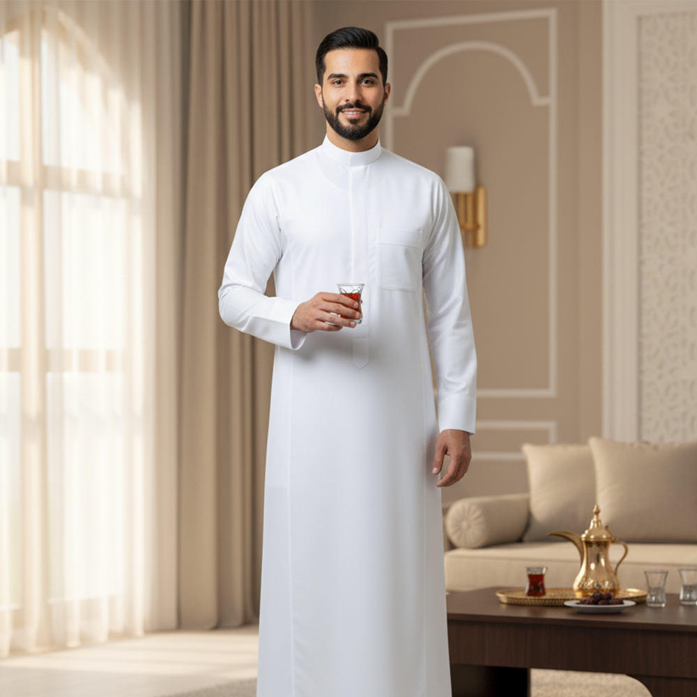 • Model: Classic Cotton Thobe with clear chest buttons (no cufflinks)