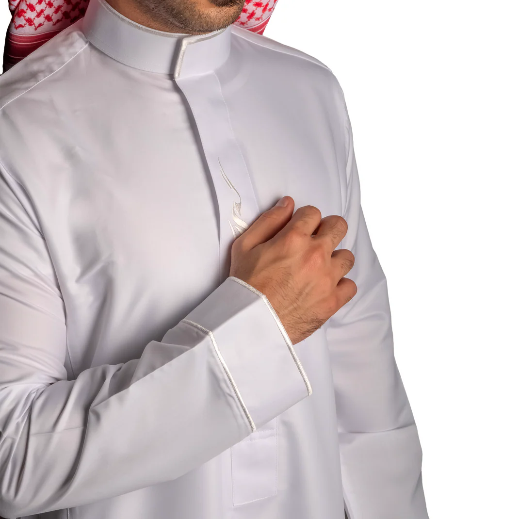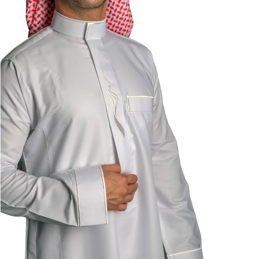 Nusuki’s Modern Embroidery Thobe… Where tradition meets modern sophistication.