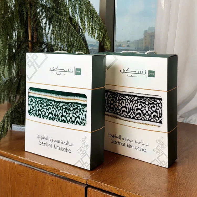 To elevate the experience, this mat comes in anelegant Nusuki gift box, making it not only a prayer mat but also a complete gifting experience ideal for yourself or as a refined spiritual present.